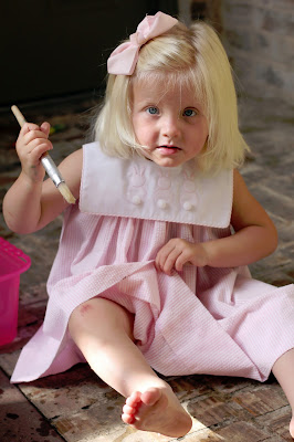 It was supposed to rain all day on Easter, but it only rained for a little while - just enough to bring the egg hunt inside but not enough to deter us from blowing bubbles and painting with water outside!